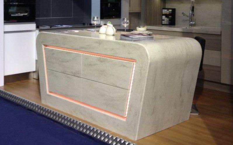 Corian ex Display Kitchen in Sage Brush with colour changing LED lights.